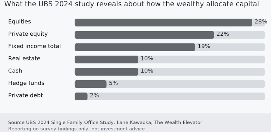 If you are like many busy professionals, most of your investable dollars sit in public equities with a bond fund on the side. That worked fine when money was cheap and markets climbed steadily. The last few years reminded me that concentration feels great on the way up and awful on the way down. In this post I share what I learned by studying how stable families allocate capital using the UBS 2024 single family office survey as the anchor. I am reporting survey findings, not giving allocation advice. The payoff is a simple way to think about your mix so drawdowns feel manageable and decisions get calmer.