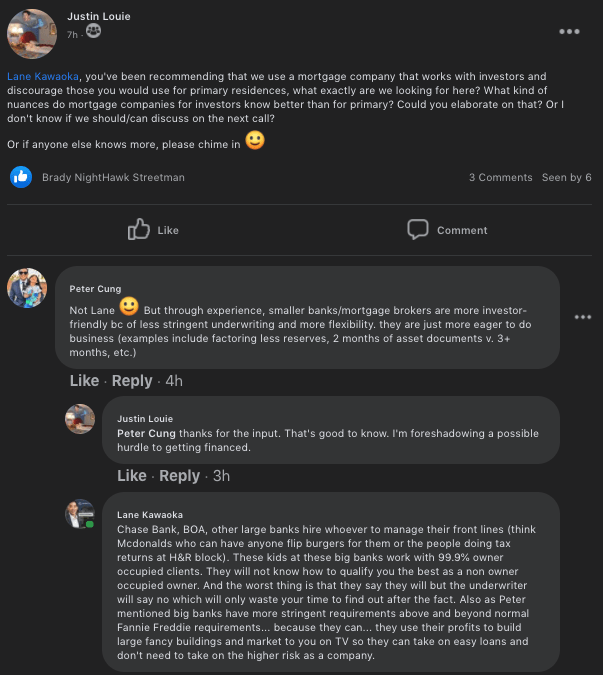 Incubator students… we can connect you with the lenders that we have had a good experience with. Generally, you don’t want to go to a bank like Chase, BOA, Capital One, or the local one you bought your home from when buying a non-owner occupied property out of state.