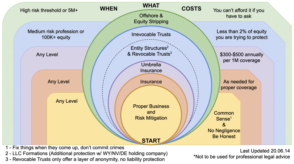 *Lane’s non-professional opinion: One of the best forms of asset protection is not to be a target, and you can achieve that by not having much money to go after in the first place. Many people under $250-500k net worth are not big targets for litigation in the first place. And oftentimes the clientele in our rentals are not financially solvent to fund a heavy litigation. Often times the biggest liability comes from outside the investment (hitting someone in your personal vehicle on the way to the supermarket). One of the first initiatives in our 12-month Passive Investor Accelerator program is to get $1M Umbrella Insurance exactly for this. Wherever your net worth is, you should have this… even before thinking of any entities.
